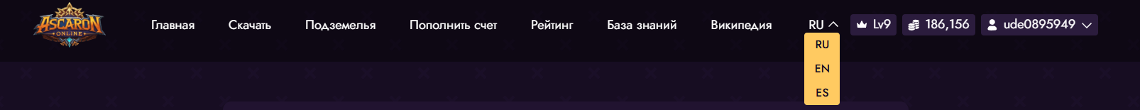 - Чтобы переключить язык, вам необходимо зайти на сайт под своей игровой учетной записью, нажать на флажок в правом верхнем углу сайта, выбрать язык, а затем повторно войти в игру на персонажа.