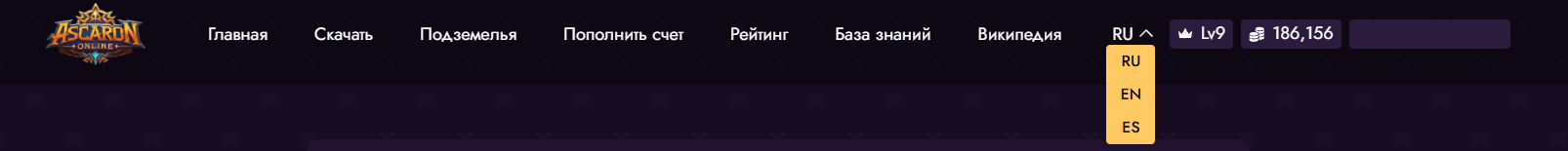 • Чтобы переключить язык, вам необходимо зайти на сайт под своей игровой учетной записью, нажать на флажок в правом верхнем углу сайта, выбрать язык, а затем повторно войти в игру на персонажа.